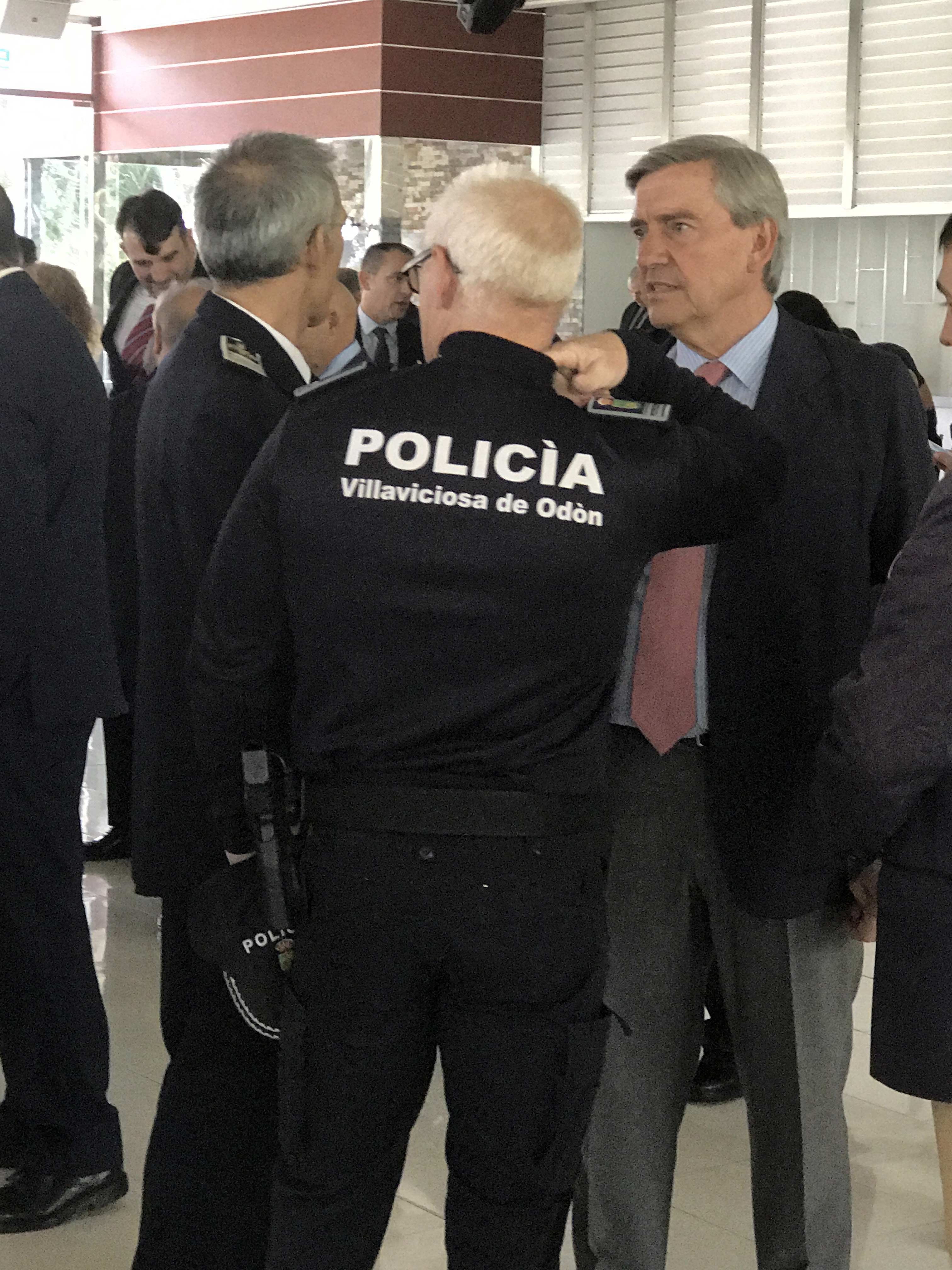 El jefe de la Policía Local de Villaviciosa de Odón, Jesús Pérez Marcos, el sargento de este cuerpo, Ricardo de la Plaza Rodríguez y el teniente y comandante de puesto del cuartel de la Guardia Civil de nuestra localidad, Ismael Huertas Moyano, han recibido sendas distinciones concedidas por la Asociación Santos Ángeles Custodios. En un acto celebrado en el Aeródromo Cuatro Vientos, los tres recibieron la medalla al Mérito de los Santos Ángeles Custodios por parte de esta asociación creada a principios de septiembre con la intención de reconocer la labor del Cuerpo Nacional de Policía. Con este galardón se ha querido reconocer los méritos y circunstancias de estos tres miembros de las fuerzas de seguridad así como su trayectoria profesional.