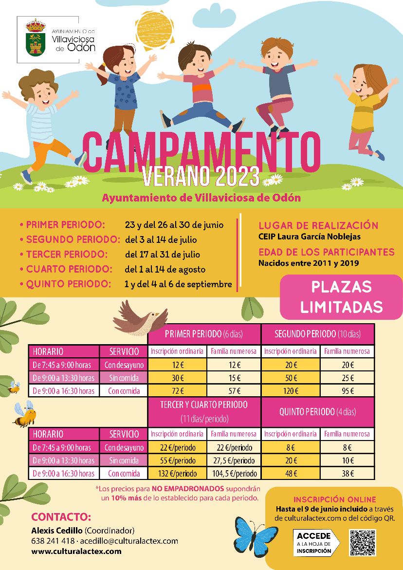 El Ayuntamiento de Villaviciosa de Odón abre el periodo de solicitud para disfrutar del campamento de verano para niños nacidos entre 2011 y 2019. La actividad, cuyo comienzo está previsto para el 23 de junio, se celebrará en el colegio público Laura García Noblejas.
