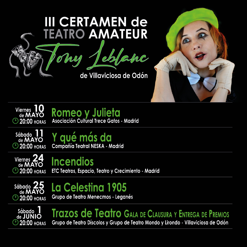 El viernes 10 de mayo comienzan las representaciones del III Certamen de Teatro Aficionado Tony Leblanc de Villaviciosa de Odón