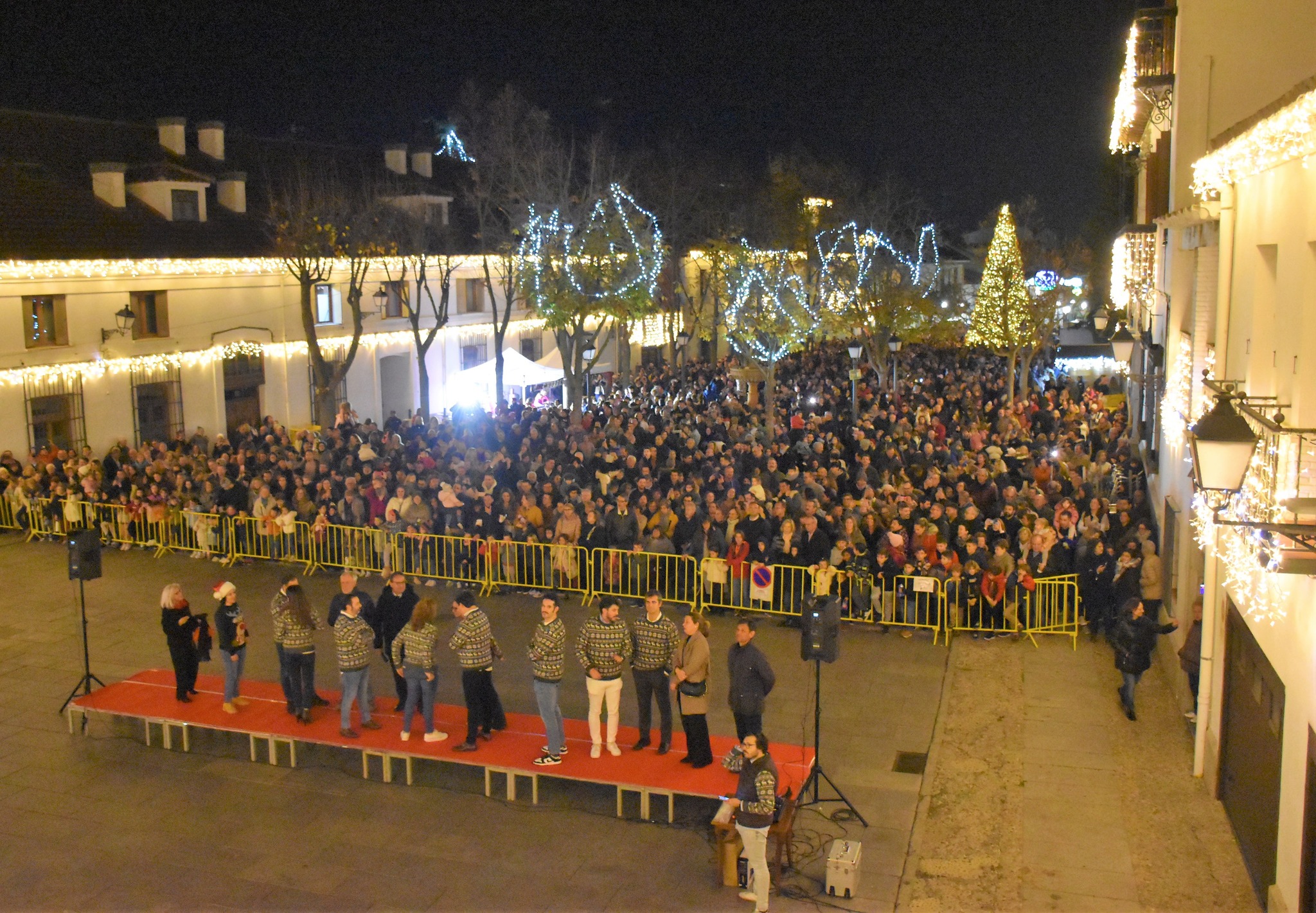 El alcalde, Juan Pedro Izquierdo, junto al Equipo de Gobierno y miembros de la Corporación, ha agradecido a los cientos de vecinos que se han dado cita en la Plaza de la Constitución para presenciar el espectáculo tras la cuenta atrás, al que le han seguido los fuegos artificiales que han iluminado el cielo de Villaviciosa de Odón