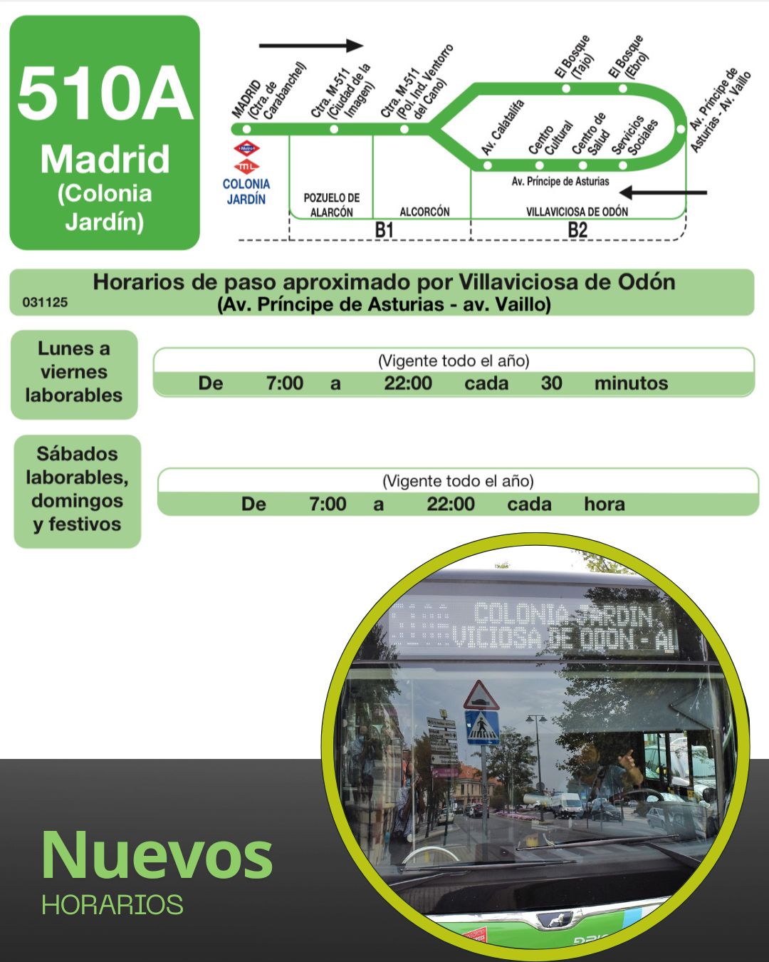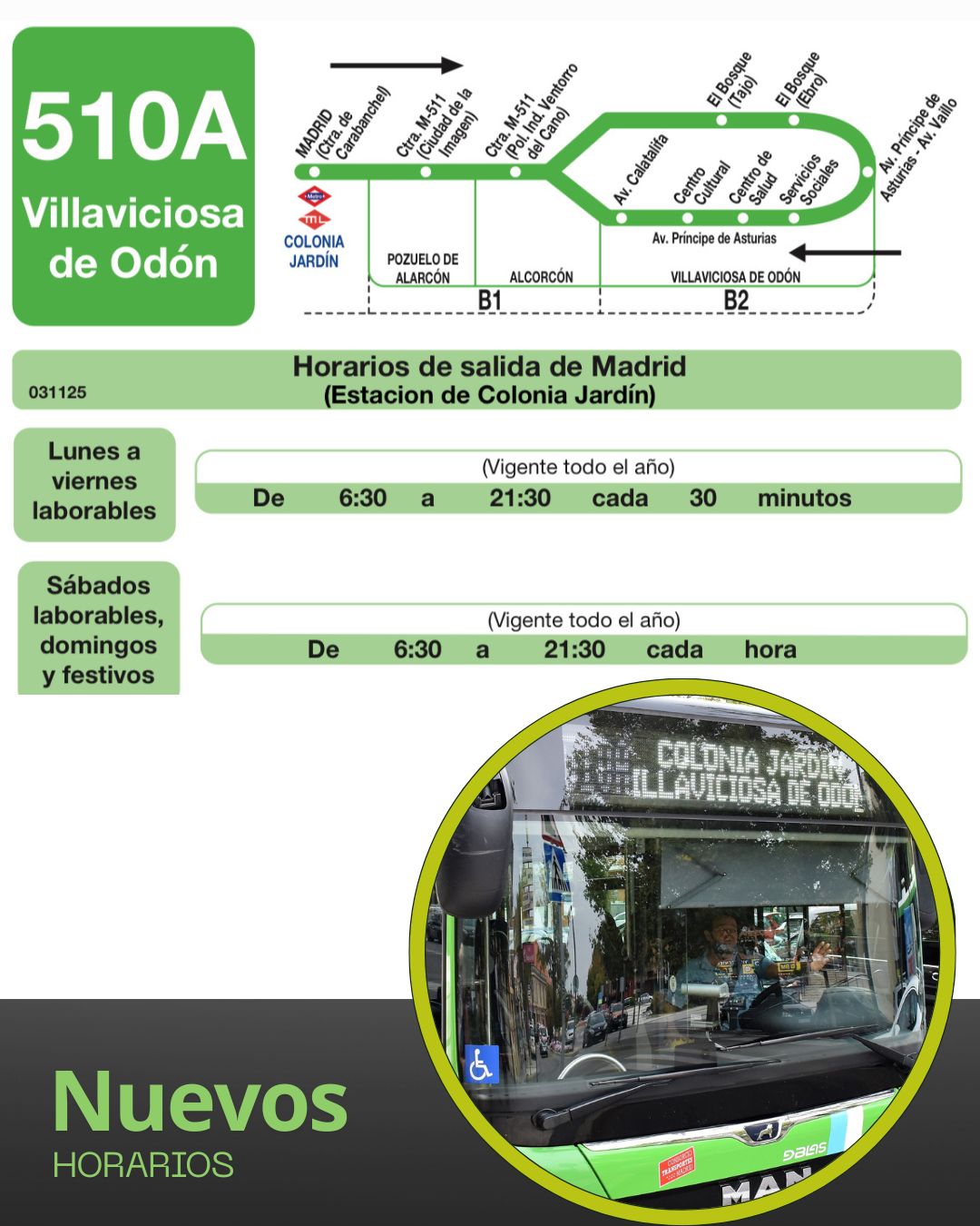 Desde el lunes 3 de noviembre la línea 510A adelantará una hora su primera expedición comenzando su recorrido a las 6:30 horas.