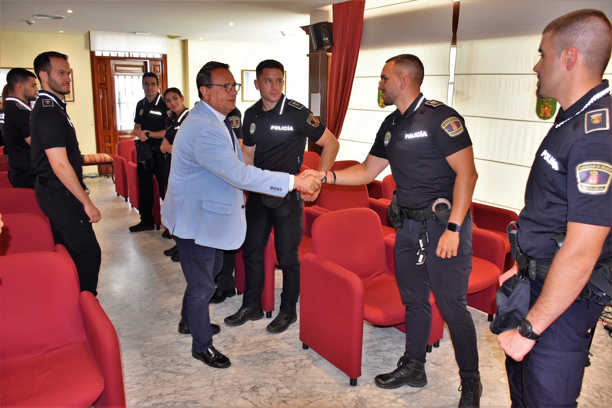El alcalde, Juan Pedro Izquierdo, les ha recibido en el Ayuntamiento para, al igual que hiciese la semana pasada en la entrega de despachos en la academia del IFISE, trasladarles la enhorabuena en nombre del municipio y darles la bienvenida a su nuevo destino.