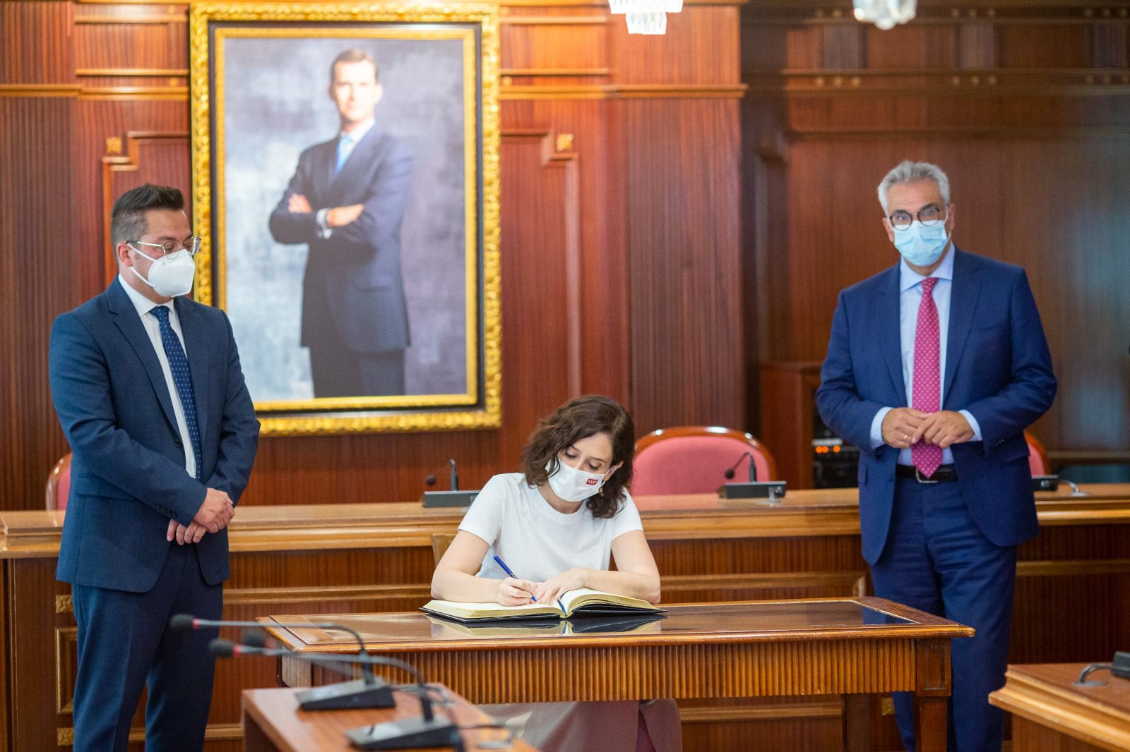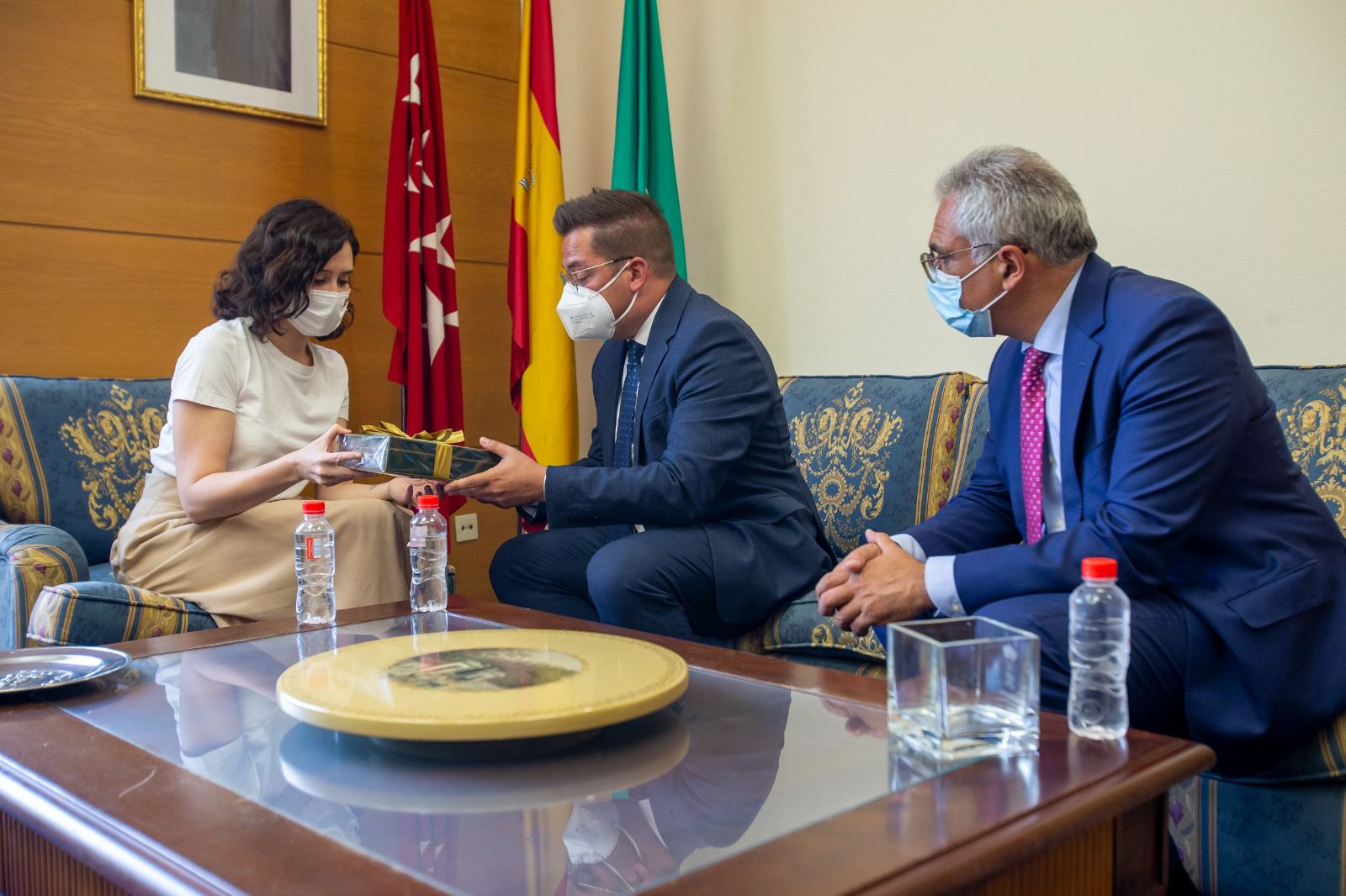 “Una localidad -ha seguido diciendo el regidor- que te recibe con los brazos abiertos y con el mejor de los deseos para que sigas guiando a nuestra Comunidad por la senda de la libertad y del desarrollo económico, sanitario y social proclamando allá donde vas el orgullo de ser madrileños integrados en un gran país como es España”.