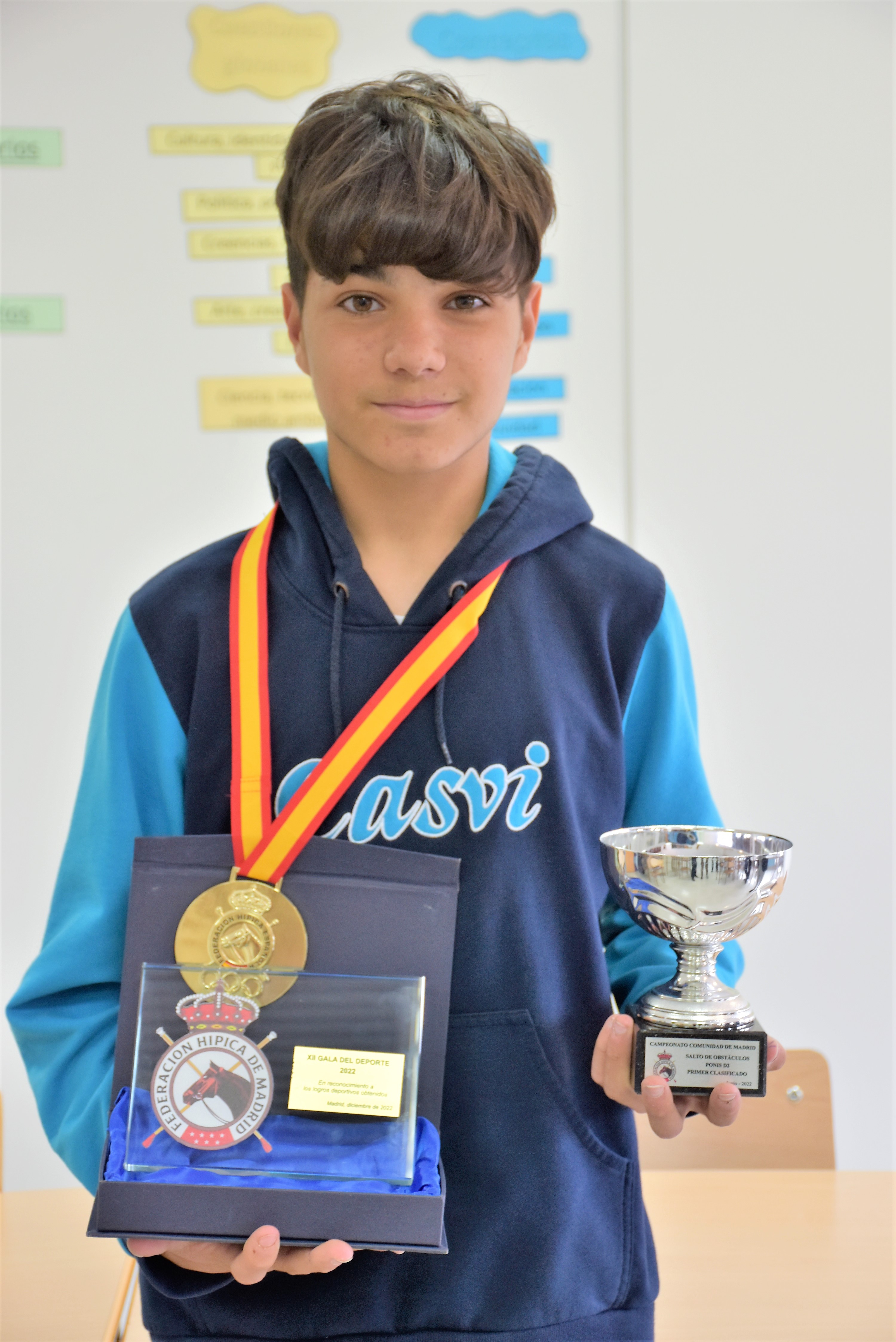 A sus 15 años, nuestro vecino Alonso Revilla es toda una promesa de la hípica a juzgar por los magníficos resultados obtenidos, tanto en el campeonato de Madrid de salto como en el de España en la modalidad de completo, en los que ha sido campeón. A su magnífico palmarés deportivo siendo tan joven se le une su expediente académico del que también puede sentirse muy orgulloso. Así lo confirman desde el Eurocolegio Casvi donde cursa estudios de 3º de la ESO. En un futuro su aspiración es ser veterinario y compaginarlo con su pasión, la competición a lomos de un caballo, un animal por el que confiesa tener un gran cariño desde niño.