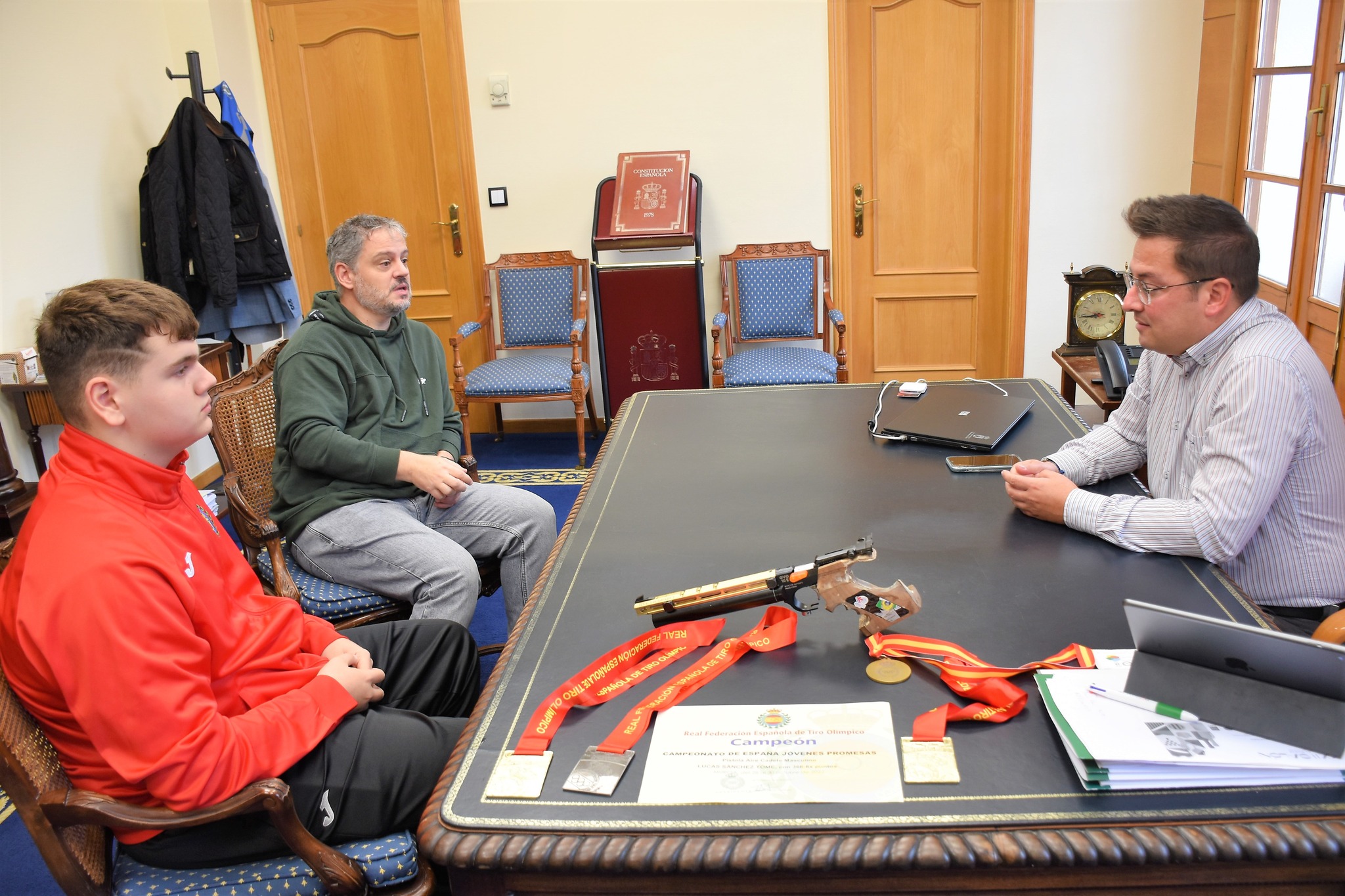 • El alcalde le ha recibido tras su reciente triunfo por el que le ha trasladado su felicitación en nombre del municipio al igual que a su padre, también tirador desde hace más de veinte años