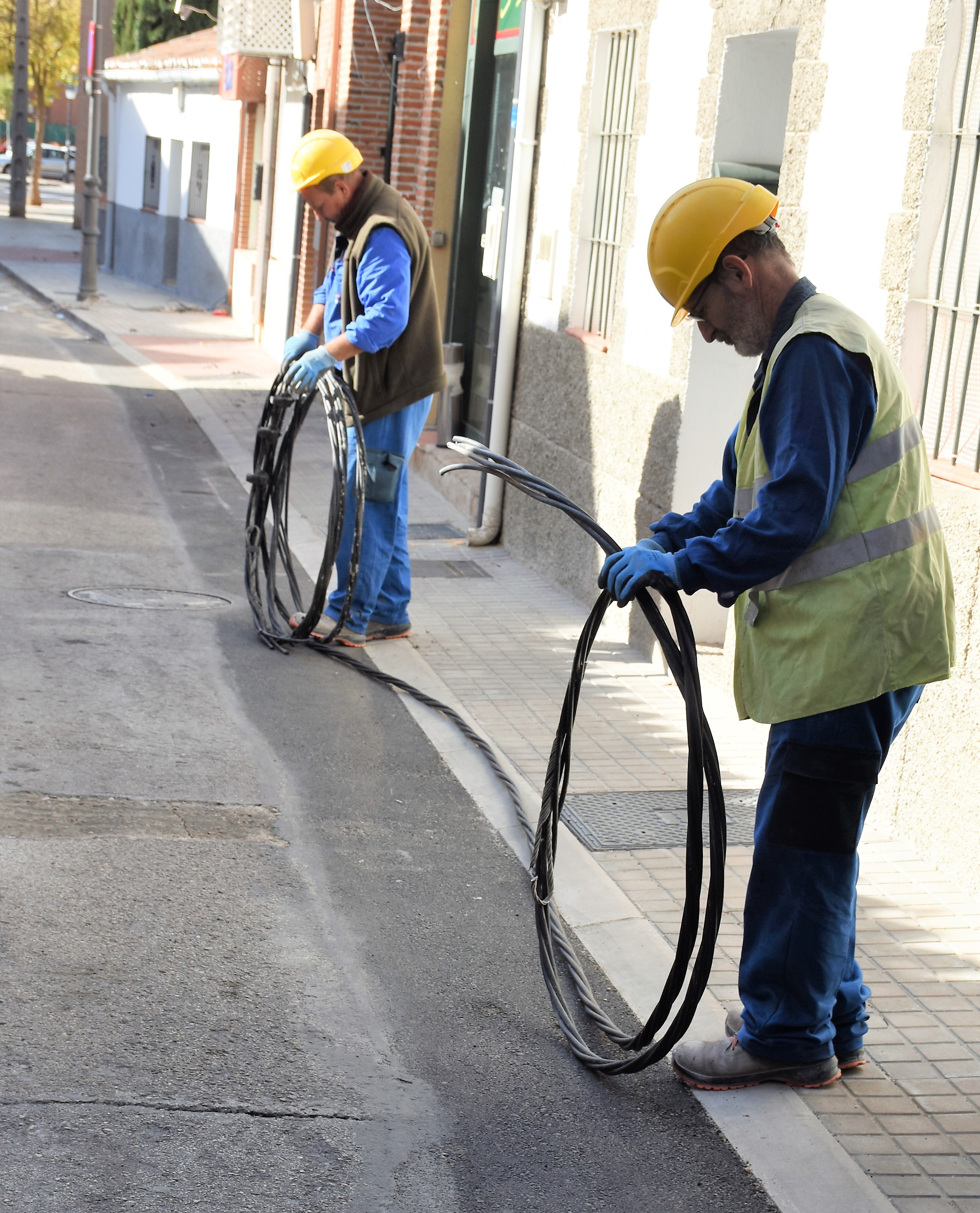 Prosiguen los trabajos de soterramiento de tendidos aéreos de baja tensión así como la retirada de cables y de postes de las aceras