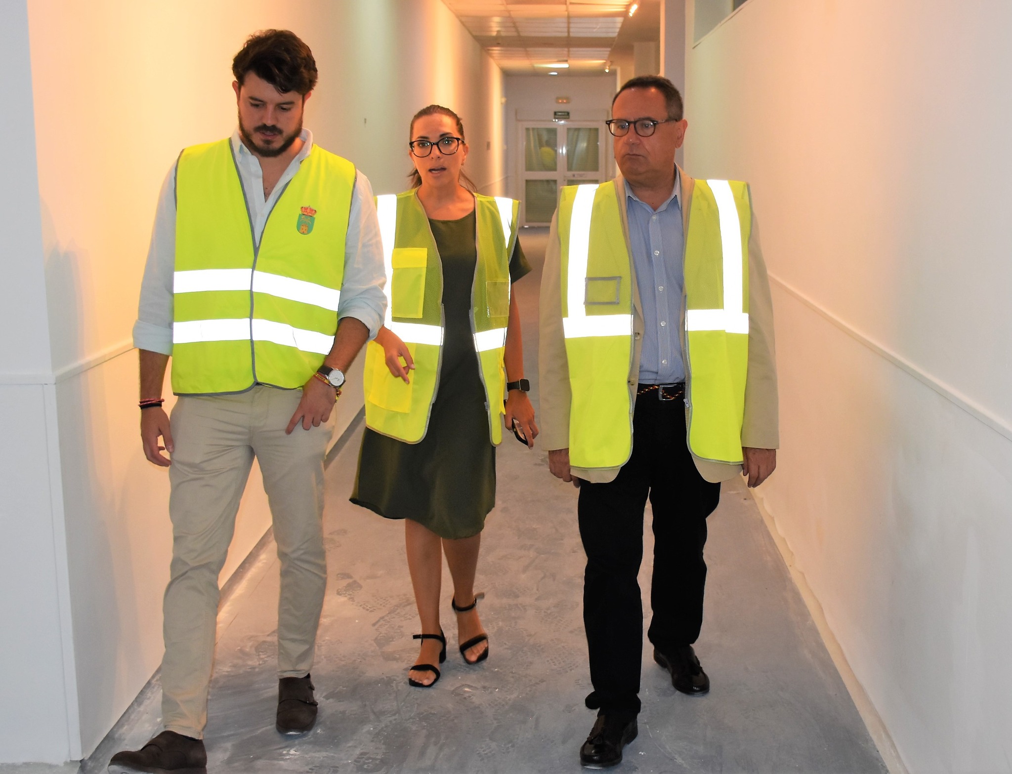 El alcalde, Juan Pedro Izquierdo, acompañado de la concejal de Educación, Inmaculada Delgado, y el concejal de Obras Públicas, Pablo Rodríguez, han visitado el desarrollo de los trabajos que estarán finalizados antes del comienzo del nuevo curso escolar