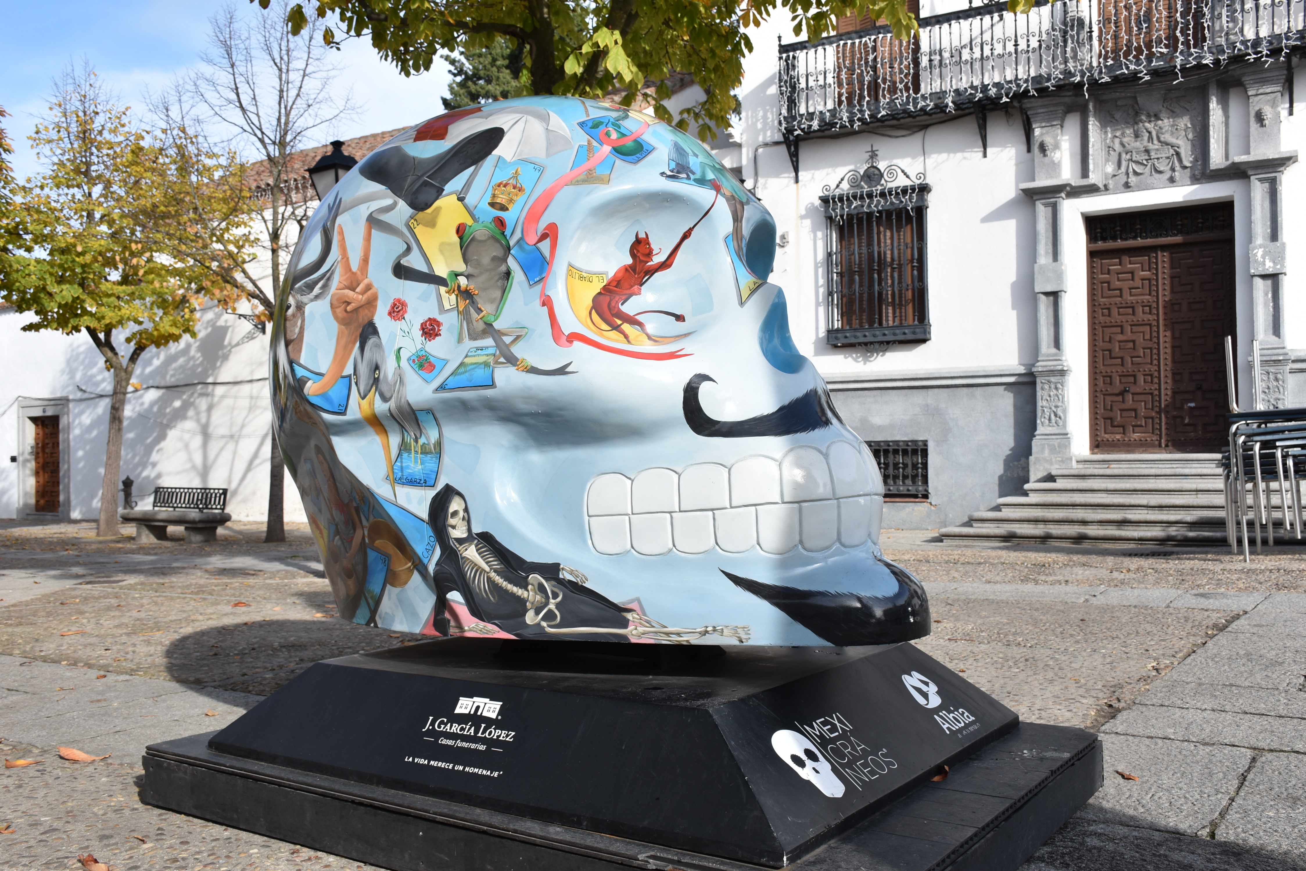 En total son once las esculturas las que se puede apreciar en otras tantas localizaciones del municipio. Se trata de icónicos cráneos gigantes que revelan el lado artístico de la cultura funeraria mexicana y busca romper con las ideas preconcebidas en torno a la pérdida y al proceso de duelo. Todo ello a través de una llamativa propuesta cuyos colores y composiciones son un reflejo de las tradicionales figuras cadavéricas y la cultura de México, un país con una nutrida tradición funeraria declarada Patrimonio Cultural Inmaterial de la Humanidad por la UNESCO.