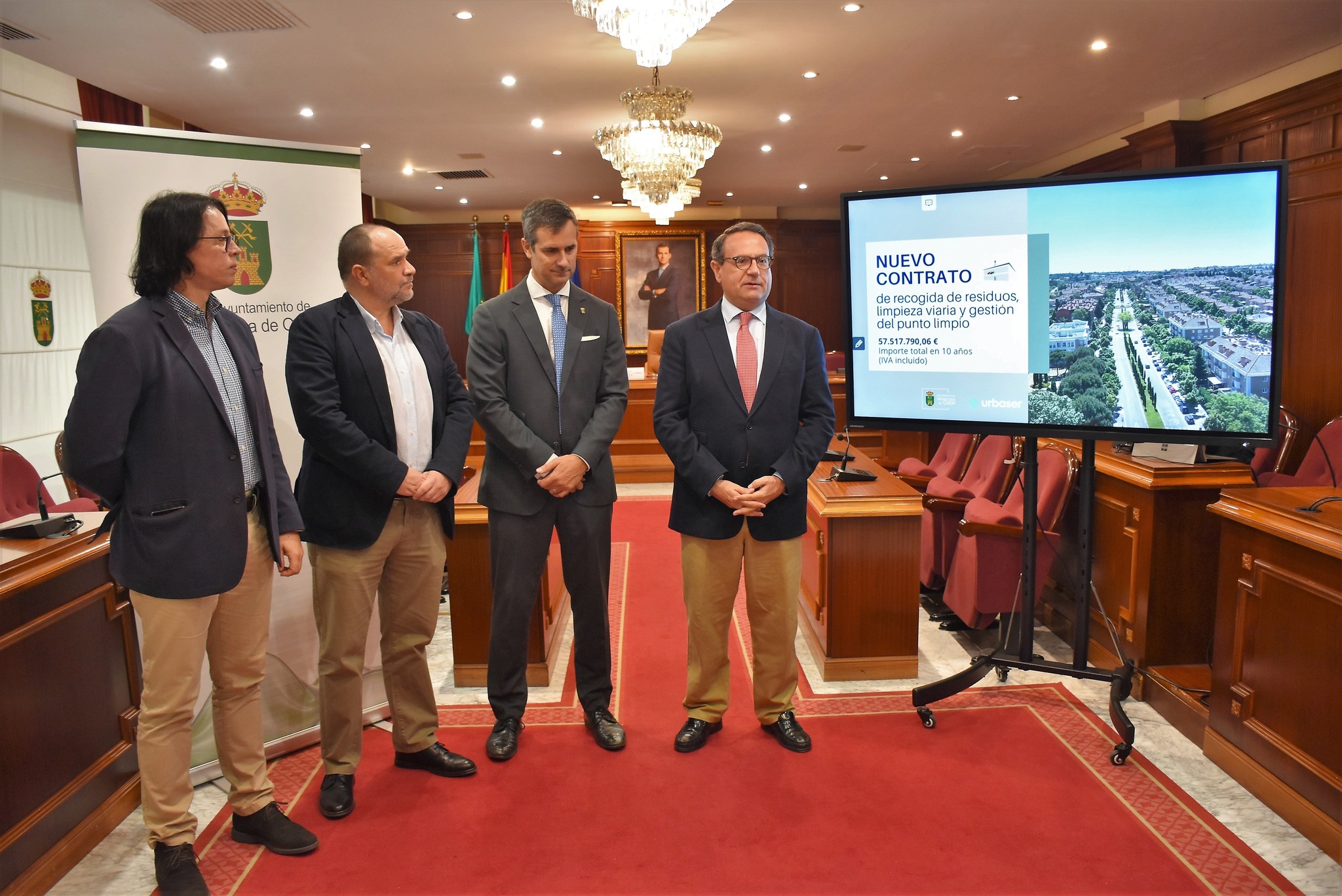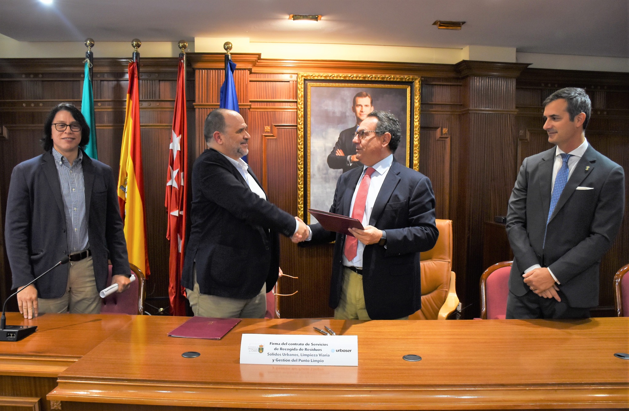 - El alcalde, Juan Pedro Izquierdo, ha firmado el contrato acompañado del concejal de Medio Ambiente, Ernesto Serigós. Por parte de Urbaser, la empresa adjudicataria, han estado presentes el director de Zona Madrid y Castilla la Mancha, Álvaro Fernández Salinero y Francisco José Guzmán.
