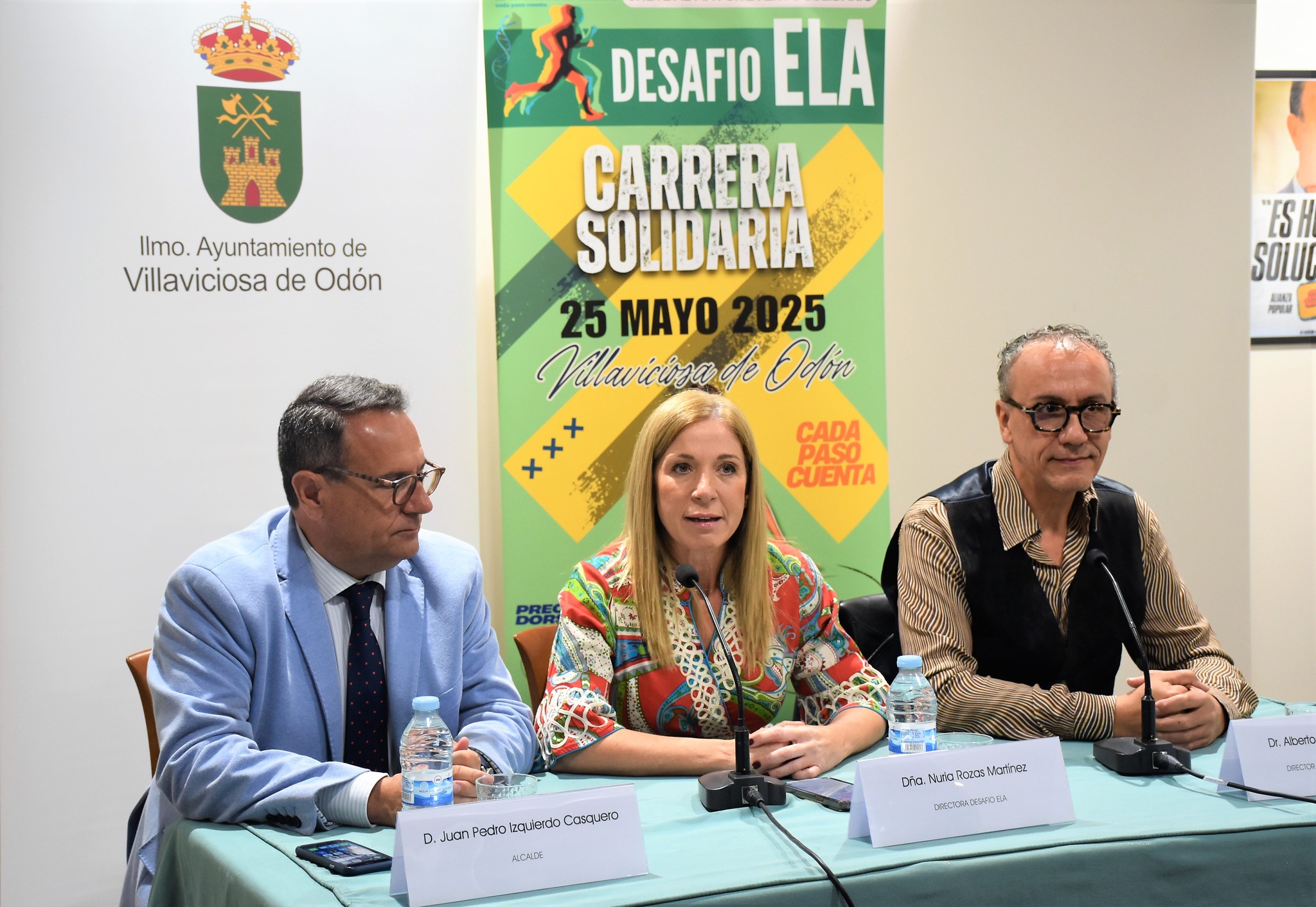 Todos los detalles de la carrera se han dado a conocer hoy en la sala de exposiciones del Coliseo de la Cultura por parte de la propia Nuria Rozas, del alcalde de Villaviciosa de Odón, Juan Pedro Izquierdo, y del doctor Alberto García, director del Laboratorio de Investigación en ELA del Hospital 12 de Octubre, entidad donde irán destinados los fondos recaudados.