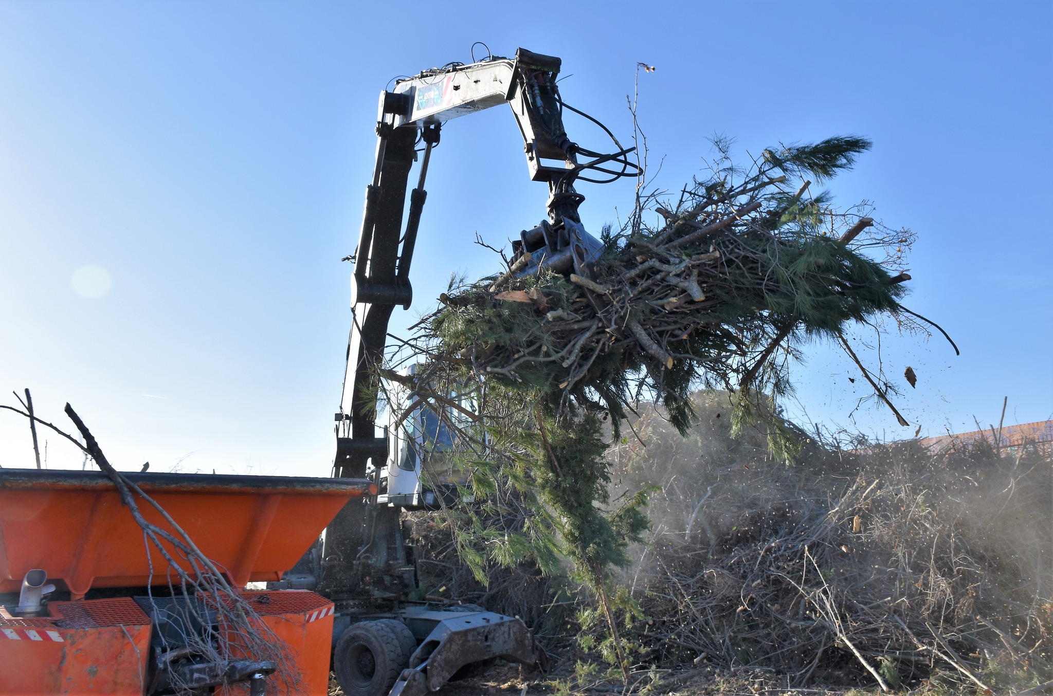 Villaviciosa de Odón tritura los restos de poda que se transformarán en biomasa para producir energía renovable