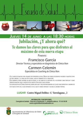 La Escuela de Salud de concejalía Sanidad en colaboración con Clínica Ilion afronta este jueves a las 18.30h. la última charla de la temporada: "Jubilación, ¿y ahora qué?" en la que se aportarán las claves para disfrutar al máximo de esta nueva etapa