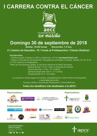 El domingo 30 de septiembre desde las 10:00 horas se celebrará en Villaviciosa de Odón la I Carrera Contra el Cáncer, una oportunidad de practicar deporte y además contribuir a una causa solidaria. Los fondos irán destinados en su totalidad a la Asociación Española Contra el Cáncer.