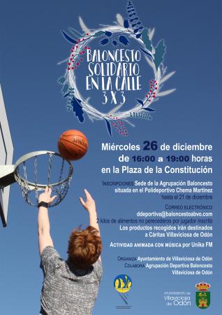 Baloncesto Solidario en la Calle 3x3 en la Plaza de la Constitución en horario de 16:00 a 19:00 horas.