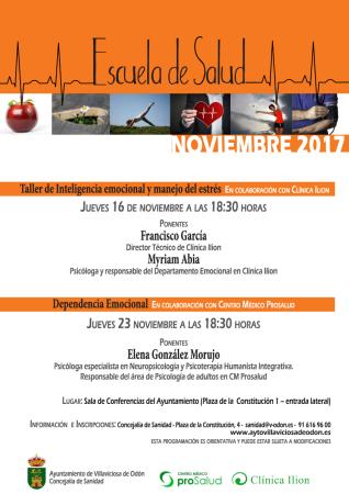El 23 de noviembre se impartirá el “Taller sobre Dependencia Emocional y manejo del estrés” también en la Sala de Conferencias del Ayuntamiento a las 18:30 horas. Elena González Moruno, psicóloga especialista en Neuropsicología y Psicoterapia Humanista Integrativa, responsable del área de Psicología del Centro Médico Prosalud, explicará qué es la dependencia emocional y dónde se favorecen estas relaciones dependientes.