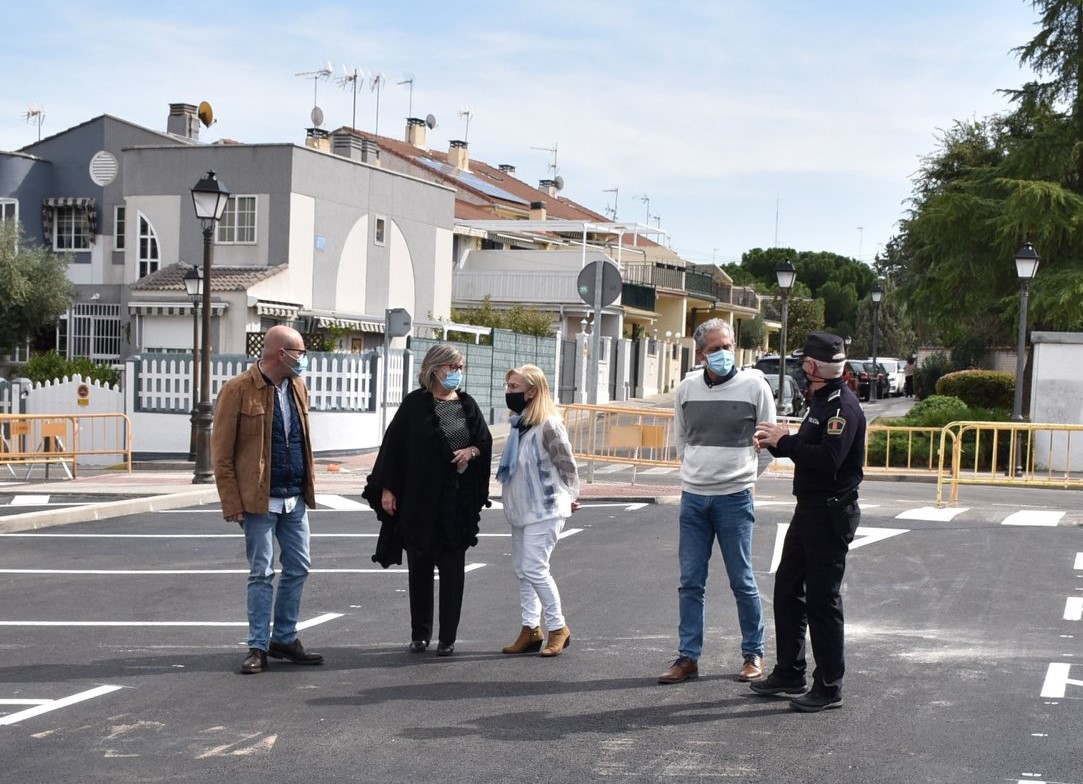 Una vez finalizados los trabajos de acondicionamiento y mejora por parte del Ayuntamiento de Villaviciosa de Odón, ya se encuentra disponible para su utilización como aparcamiento municipal la zona situada en la calle Fernando III. El alcalde José Luis Pérez Viu, acompañado de la primera teniente de alcalde, Mercedes Castañeda y el concejal de Movilidad y Transportes, José María López, junto al subinspector de Policía Local, Ricardo de la Plaza, han comprobado el resultado de las obras. Estas han consistido en el saneamiento del firme, asfaltado, colocación de señalización vertical y horizontal, así como la creación de una plaza para personas con movilidad reducida. Estos mismos trabajos también se han realizado en la calle posterior obras que conecta el aparcamiento con el camino del Bispo.
