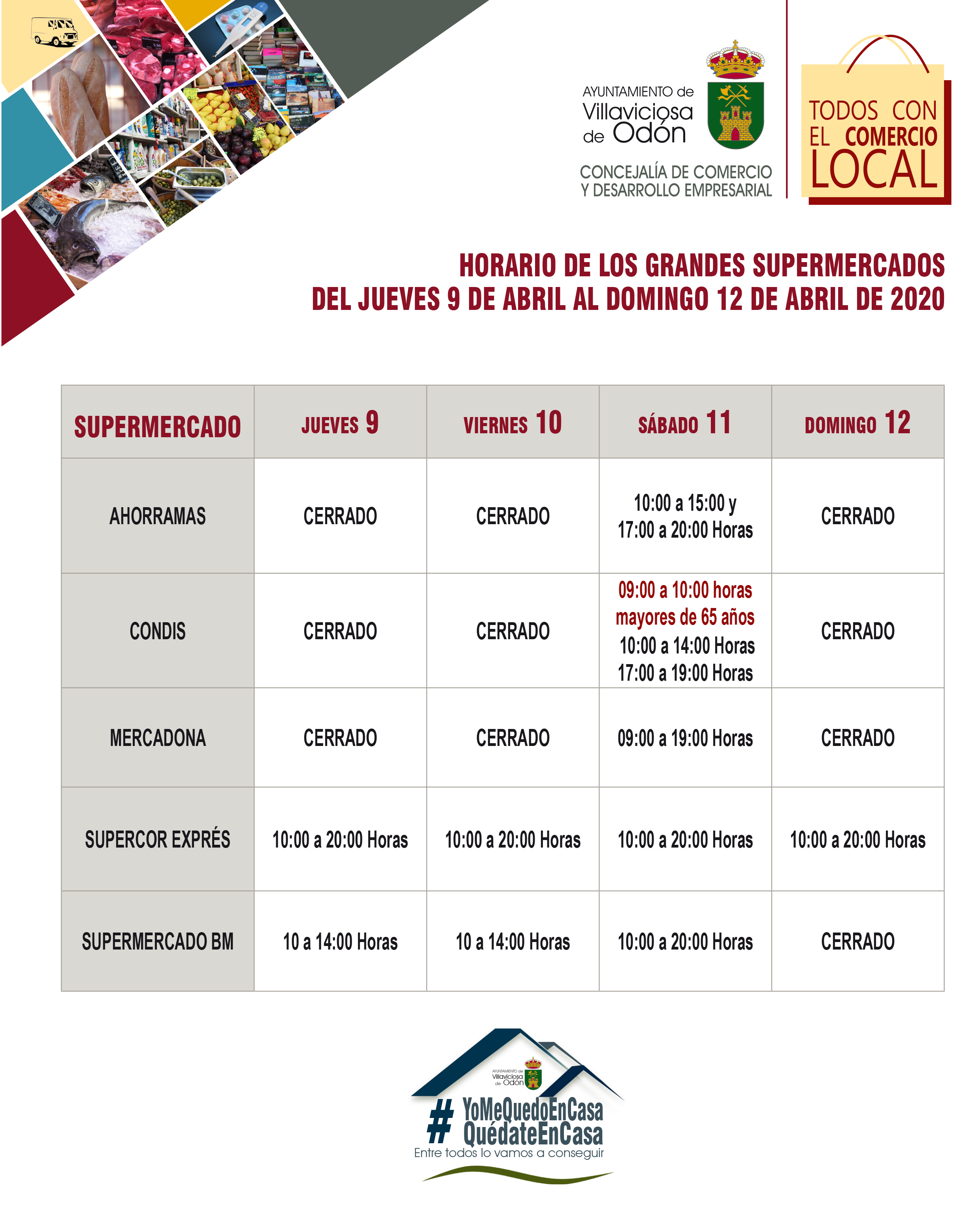 Ante las dudas que se han suscitado entre muchos vecinos sobre la apertura en estos días de Semana Santa de los grandes supermercados ubicados en el municipio, os facilitamos la información al respecto.