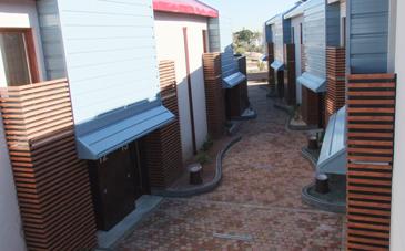 Todos los inmuebles, de unos 57 metros cuadrados útiles, disponen de dos dormitorios, salón, cocina independiente, baño completo, aseo y patio, repartidos en dos plantas, habiendo adaptado dos de ellas en una única planta para personas con movilidad reducida. Además, tienen vinculadas dos plazas de garaje, cada una de 25 metros cuadrados útiles y un trastero de 7 metros cuadrados útiles.
