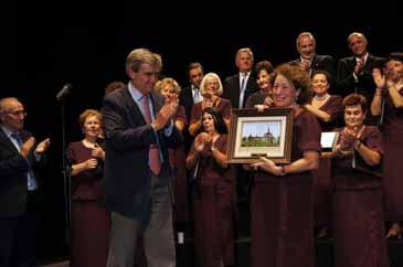 El Auditorio Teresa Berganza acogió la actuación de la coral Capilla de la Torre de Villaviciosa de Asturias, municipio hermanado con nuestra localidad desde 1995. Desde el hermanamiento son varias las actuaciones conjuntas y de intercambio que se llevan a cabo fortaleciendo así los lazos de unión de ambas localidades. La actuación, que estuvo presidida por el alcalde, José Jover, y la concejala de Cultura, María del Carmen Alonso, entre otros miembros del equipo de Gobierno, concluyó con el intercambió de regalos por parte del regidor villaodonense y los miembros de la coral.