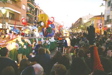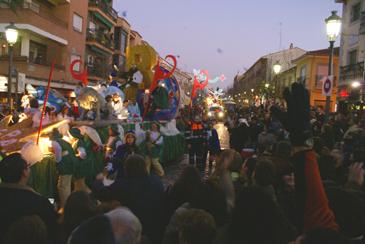 Un total de 11 carrozas entre artistas, 4 carrozas temáticas, 1 con la escenificación del Misterio de la Navidad y varios pajes reales subidos a caballo, escoltaron la llegada de las tres más esperadas por los pequeños: la de los Reyes Melchor, Gaspar y Baltasar. Además, los centros escolares Alcalá, Hermanos García Noblejas, Casvi, Gandhi, Zuloaga y Bosque Real junto a Cáritas y niños seleccionados a través de un concurso participaron también en el recorrido. En total intervinieon en el desarrollo de la Cabalgata 300 personas entre niños, voluntarios, Policía Local, Protección Civil y personal del Ayuntamiento.
