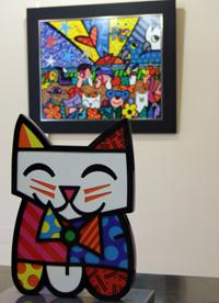 Romero Britto no sólo realiza fantásticas esculturas de arte y lienzos sino que además ha decorado una gran cantidad de artículos de notorias marcas como bebidas (Absolut, Pepsi, etcétera), automóviles (Audi, Volvo, etcétera), relojes, cruceros, e incluso ha dado color a la presentación de la Super Bowl junto con la prestigiosa compañía “Cirque du Soleil”.