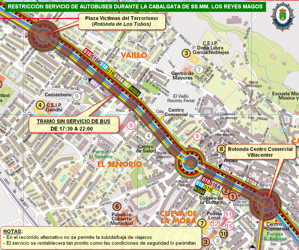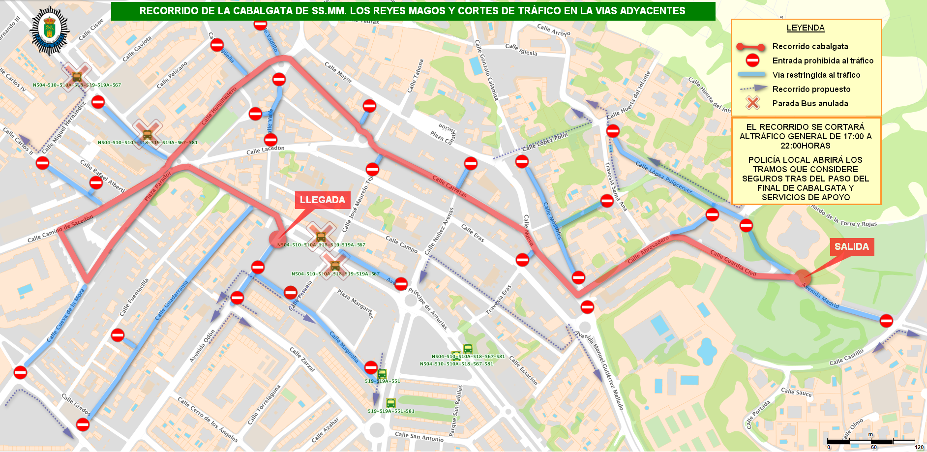 Información sobre los cortes de tráfico y desvío de las rutas de autobuses durante la Cabalgata
