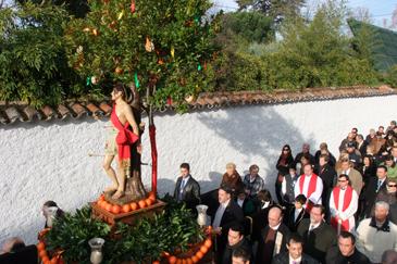 10:30 horas. Procesión con nuestro Santo San Sebastián, por las calles habituales de nuestra localidad, iniciando y terminando el recorrido en la Iglesia de Santiago Apóstol. Al finalizar la PROCESIÓN y en la puerta de la Iglesia tendrá lugar la tradicional y típica SUBASTA DE ANDAS y RIFA DEL RAMO DE LAUREL DEL SANTO entre nuestros Hermanos.