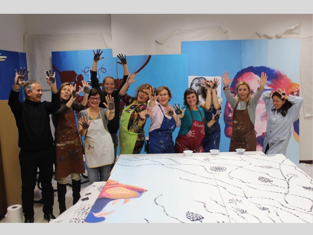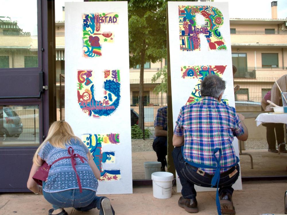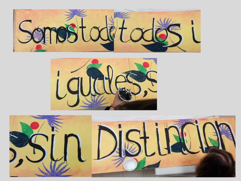 En el mural, donde la figura de la mujer juega un papel central, han participado más de 250 vecinos de Villaviciosa de Odón de todas las edades: niños, jóvenes, adultos e incluso, familias al completo, a lo largo de seis fases distintas. Juntos, han generado valores de corresponsabilidad, conciliación e igualdad que posteriormente han plasmado en más de 100 metros cuadrados de madera con pintura acrílica.