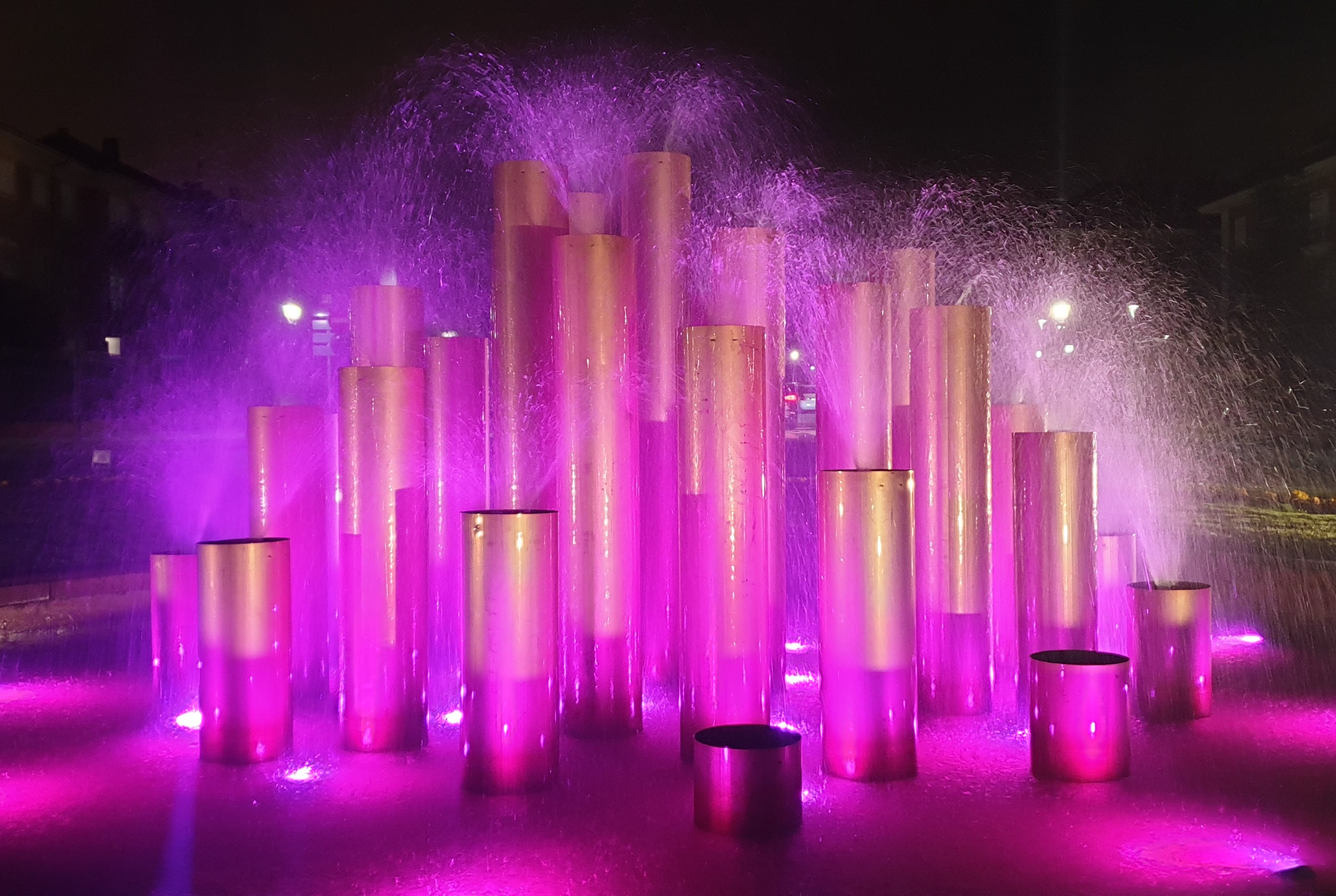 Los principales edificios municipales y fuentes se iluiminan y lucen los lazos conmemorativos con motivo del Día Internacional de la Mujer.