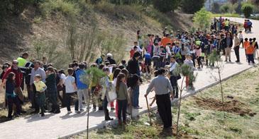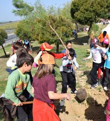 Casi cuatrocientos escolares de los colegios Gandhi, Laura García Noblejas, Alcalá, Eurocolegio Casvi y Agora Internacional, celebraron en la mañana de este lunes el Día del Árbol con la plantación de 80 pinos piñoneros. El lugar escogido en esta ocasión fue una zona verde del parque lineal, junto al recinto canino inaugurado recientemente. Antes de proceder a la plantación, el alcalde, José Jover, les dirigió unas palabras donde incidió en la importancia de plantar árboles puesto que son “el pulmón de nuestro planeta ya que aportan a la atmósfera el oxígeno necesario para vivir, además de ser generadores de vida”. El regidor también aprovechó la ocasión para hacerles llegar el mensaje de que, todos, niños y mayores, debemos de ser cuidadosos y respetuosos con la naturaleza.