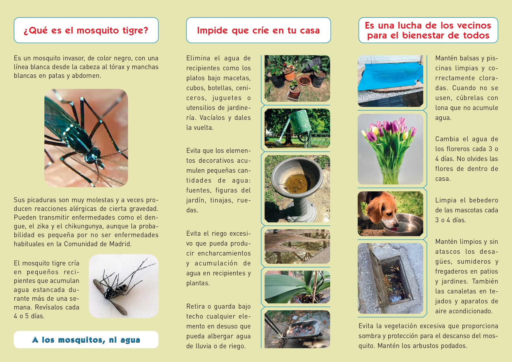 El 80% de los focos de cría de esta especie de mosquito se localiza en viviendas particulares. Por esta razón “es trascendental que los vecinos sigan una serie de recomendaciones en sus hogares siendo la colaboración ciudadana imprescindible para que el control del mosquito tigre sea efectivo”, se dice en la misiva.